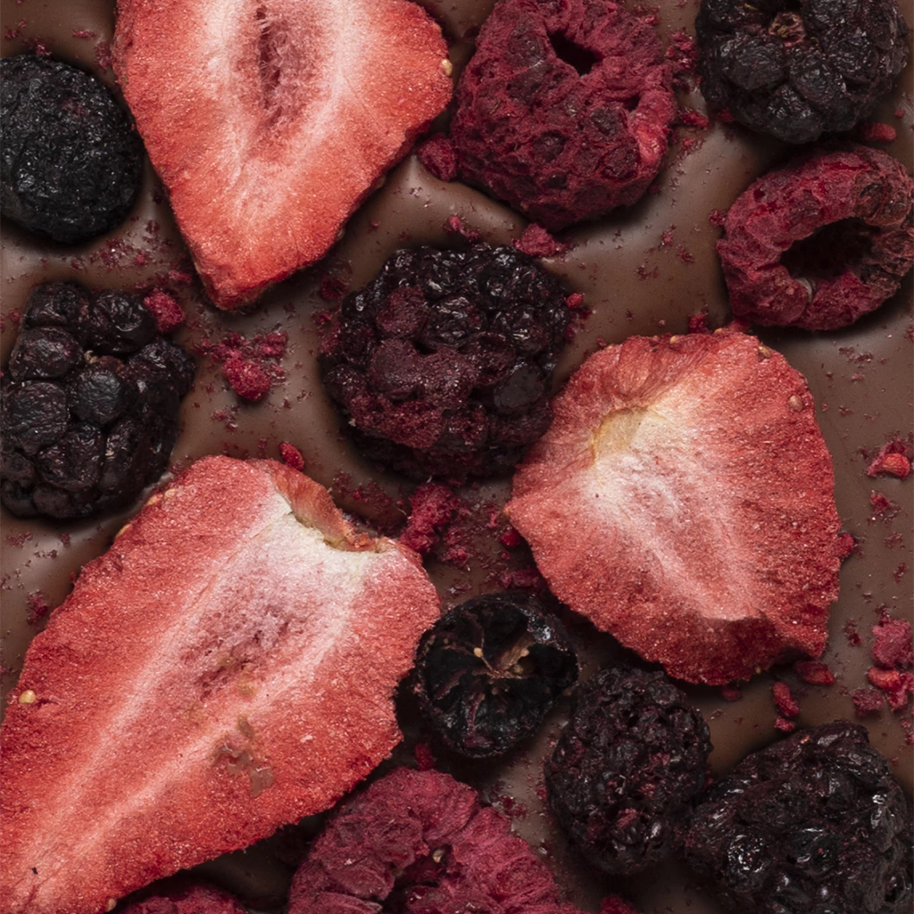 Tableta de chocolate con leche y fruta liofilizada